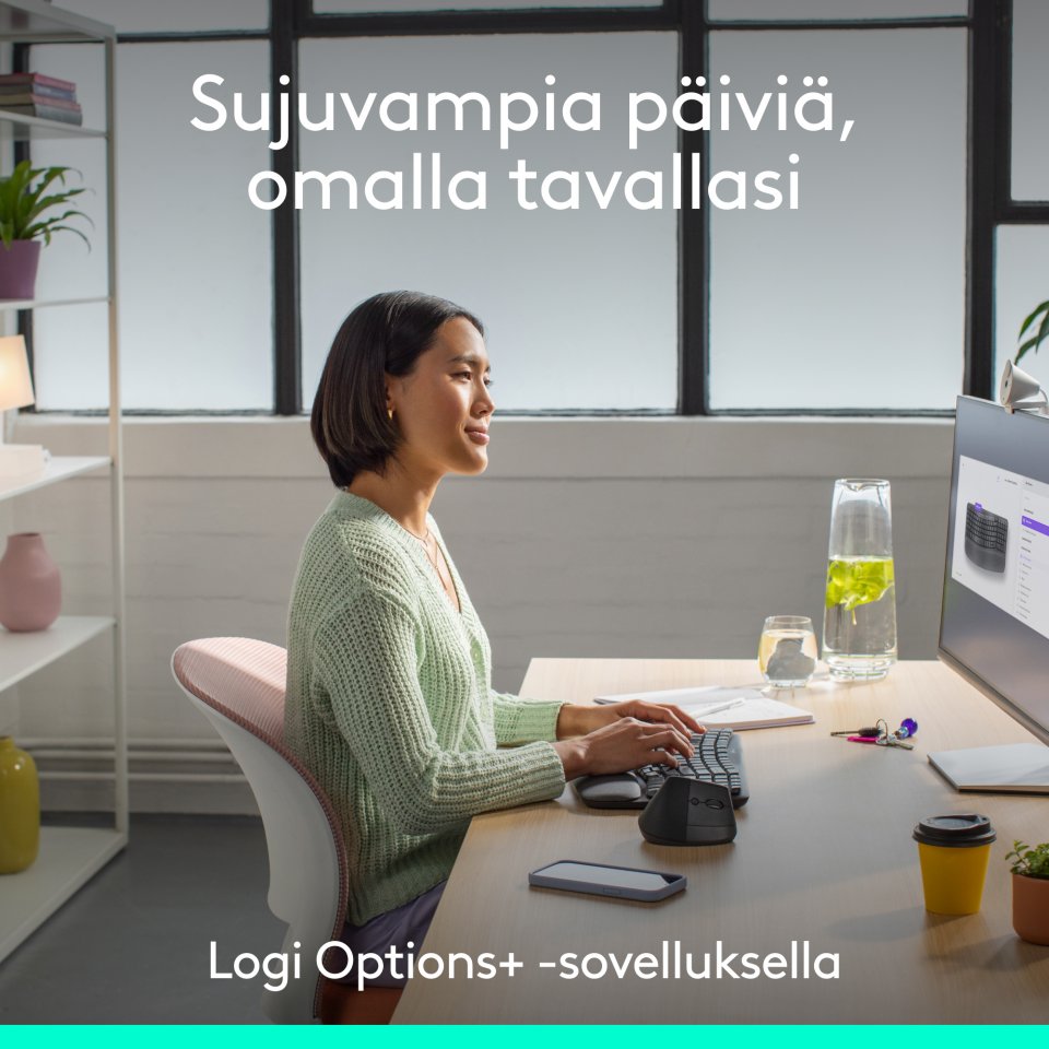 • Logi Options+ -sovelluksen tuki Windowsissa ja macOS:ssä