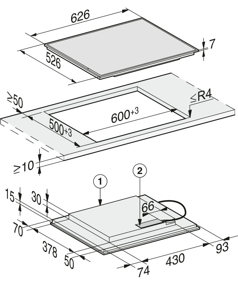 • Väljagamismõõdud L x S (mm): 600 x 500
