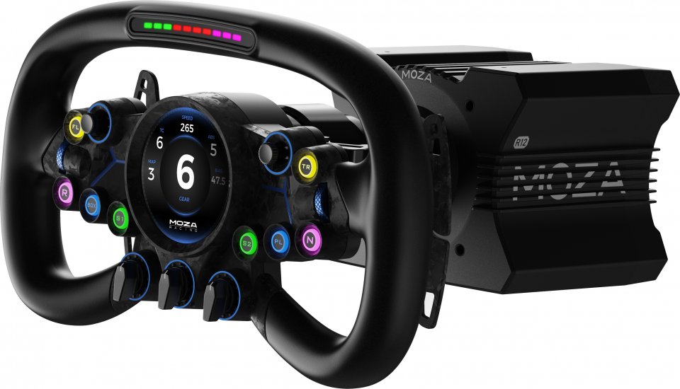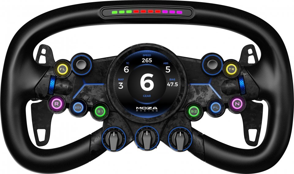 Ohjaimessa on gyroskooppi ja MOZA:n ohjelmistoalgoritmit, jotka pitävät näytön täydellisesti vaakasuorassa, mikä varmistaa alhaisen viiveen ja parannetun näkyvyyden. Ultra-nopea 1,3 GHz:n neliydinprosessori mahdollistaa monimutkaisen reaaliaikaisen näytön renderöinnin lähes ilman viivettä. Yläosaan asennettu kierroslukumittari on saanut inspiraationsa superautojen ohjauspyöristä. Siinä on 10 kirkasta LED-valoa, jotka voidaan mukauttaa 16,7 miljoonaan väriin, ja se voi toimia myös lippusignaalin ilmaisimena.