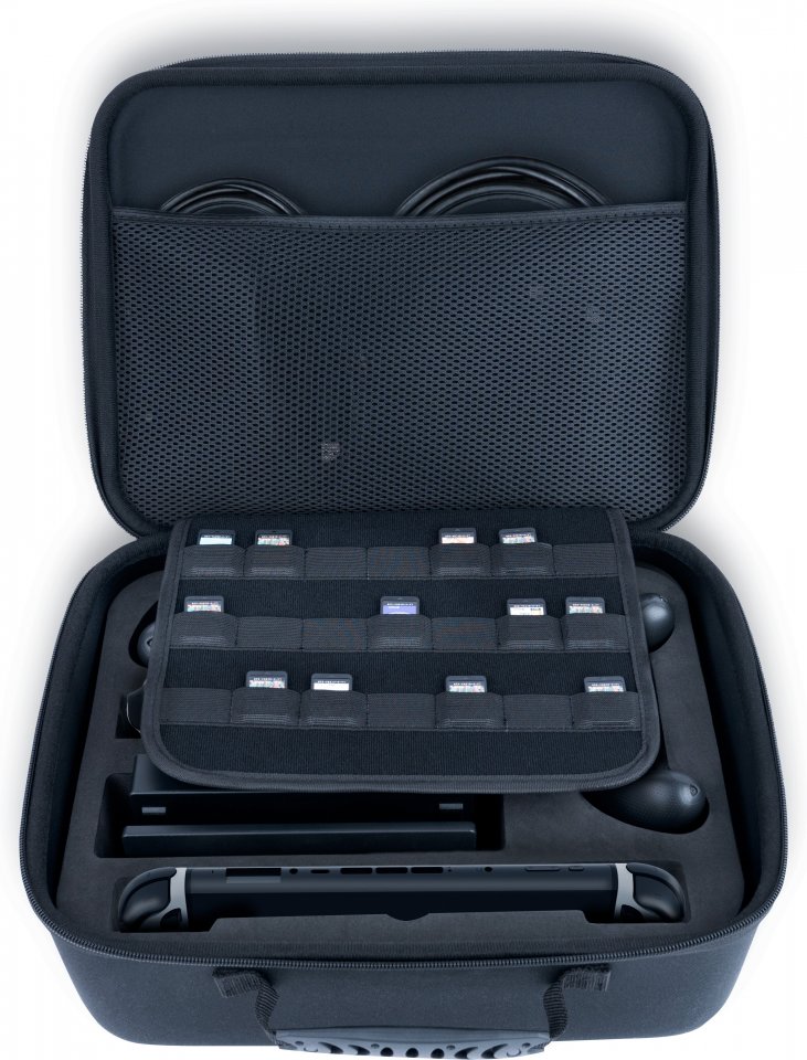 Monipuolinen Nacon-säilytyskotelo Nintendo Switch 2:lle on täydellinen ratkaisu konsolin ja tarvikkeiden kuljettamiseen ja suojaamiseen. Tilaa jopa kahdelle PRO-ohjaimelle, neljälle Joy-Con-parille, virtalähteelle, HDMI-kaapelille ja 10 pelikasetille. Iskunkestävä sisävuori suojaa laitteitasi matkalla. Varustettu kantokahvalla.