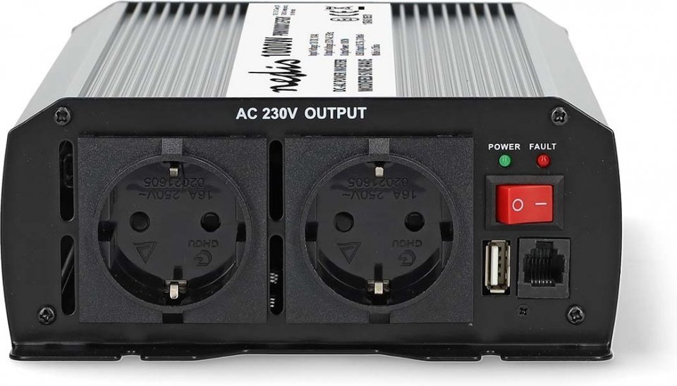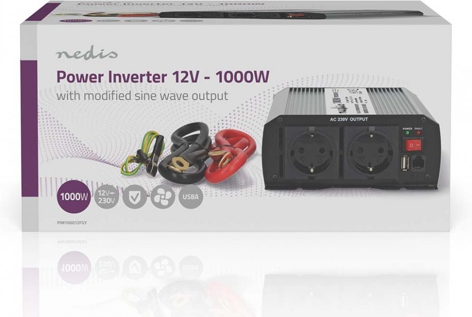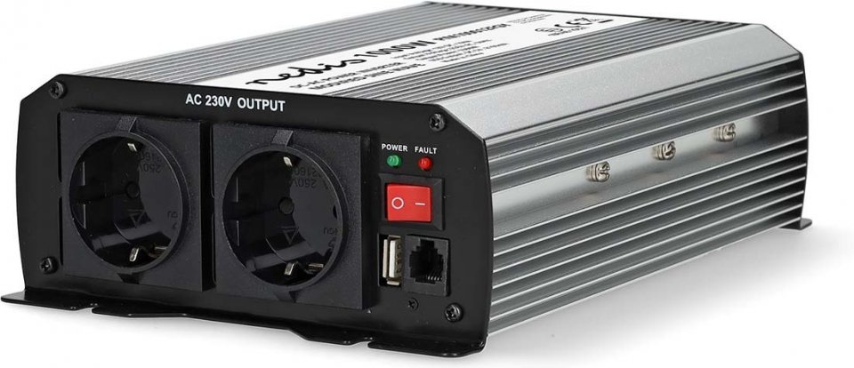 Nedis PIM100012FGY invertteri, 12 V, 1000 W, muokattu siniaalto