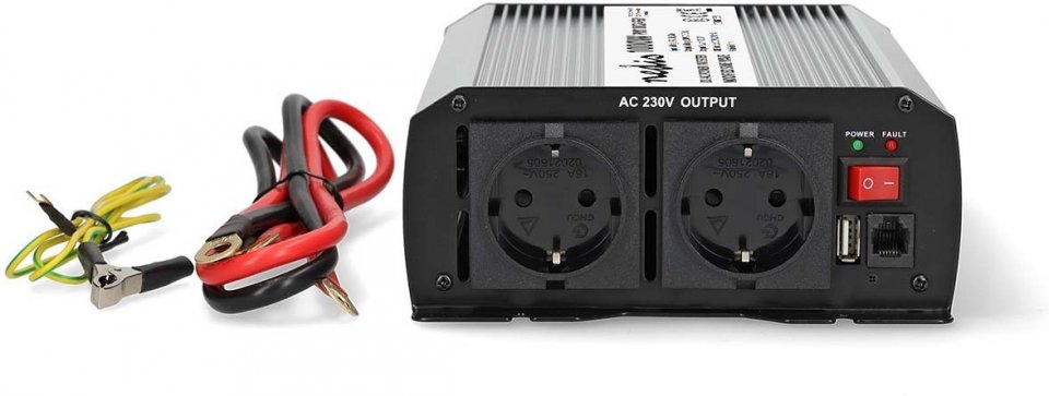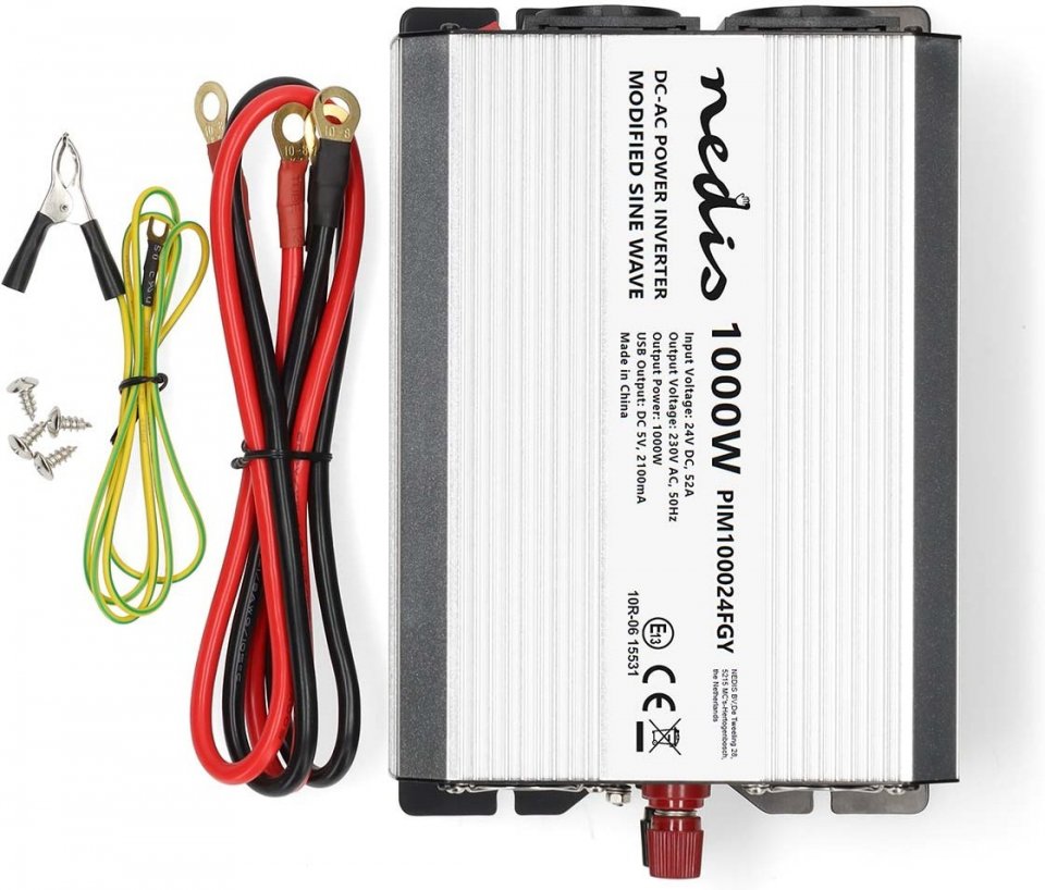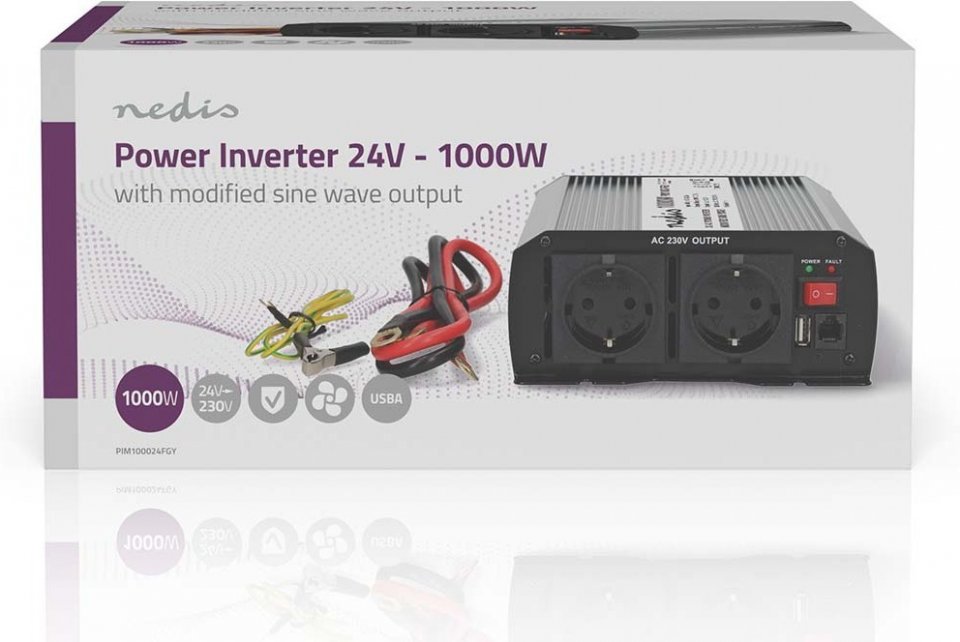 Nedis PIM100024FGY invertteri, 24 V, 1000 W, muokattu siniaalto