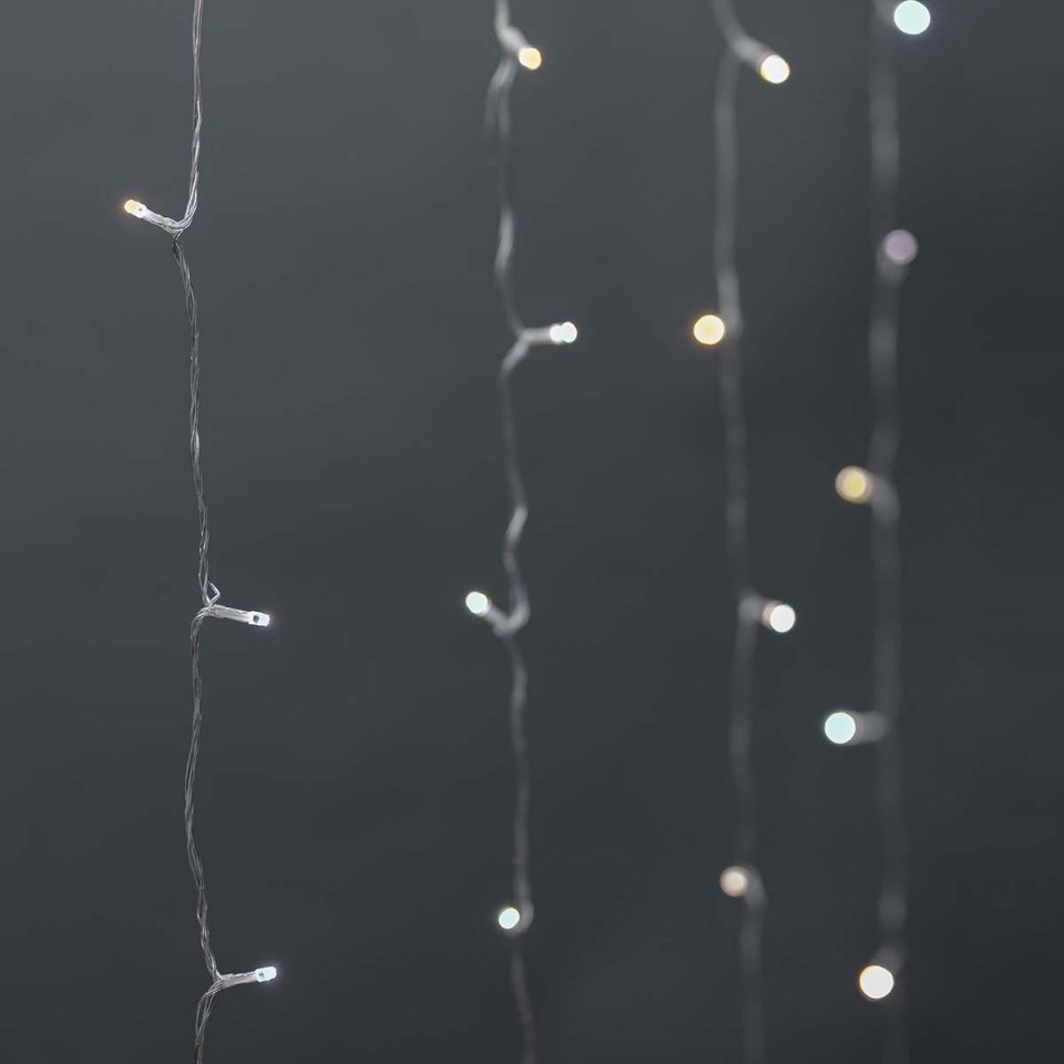 Nedis SmartLife -koristevaloverhossa on 200 LED-valoa, jotka ovat säädettävissä kymästä lämpimään valkoiseen. Jokaista 10 valonauhaa kohden on 20 LED-valoa. Tämä koristevaloverho soveltuu erinomaisesti seinä-, katto- ja ikkunakoristeeksi. Virtajohto on 3 metriä pitkä, joten tämä on erittäin kätevää pistorasian ollessa hieman kauempana. Koristevalosarjaa voi käyttää sekä sisä- että ulkotiloissa. Ohjaus tapahtuu helppokäyttöisellä Nedis SmartLife -sovelluksella. Voit säätää haluamasi kirkkauden sovelluksessa sekä valita jonkin seitsemästä esimääritetystä liikekuviotehosteesta tai tasaisen tilan. Lisäksi käyttöä voidaan helpottaa asettamalla erilaisia ajastuksia, jotta koristevalosarja on aina valaistu oikeaan aikaan. Kaapelin läpinäkyvä väri sopii hyvin kaikkiin taustoihin häiritsemättä silmää.