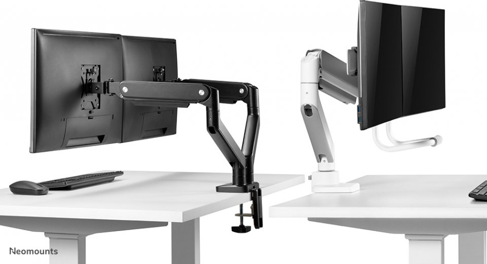 The Neomounts by Newstar DS75-450WH2 on täysin kääntyvä pöytäteline kahdelle jopa 32" näytölle, joiden enimmäispaino on 8 kg. Monipuolinen kallistus- (20°), kierto- (360°) ja kääntö (20°) -säädöt mahdollistaa telineen asettamisen mihin tahansa katselukulmaan. Lisäksi telineissä on kaasujousi korkeussäätö (27,7-56 cm) ja syvyyssäätö (0-50,5 cm), jotka mahdollistavat parhaan mahdollisen ergonomisen työasennon.