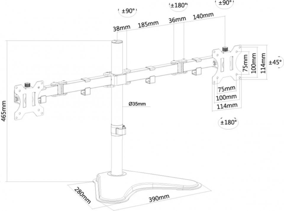 Neomounts FPMA-D550DD on monipuolisilla säädöillä varustettu pöytäteline kahdelle 10" - 32" näytölle. Teline on varustettu pöytäjalustalla, joten pöytään ei tarvitse tehdä mitään muutoksia. Näyttöjä on helppo nostaa, laskea, kallistaa, kiertää ja kääntää, joten ergonomisen työskentelyasennon löytäminen on vaivatonta. Teline avulla säästät tilaa työpöydältä ja kätevät kaapelikiinnikkeet takaavat siistin asennuksen.