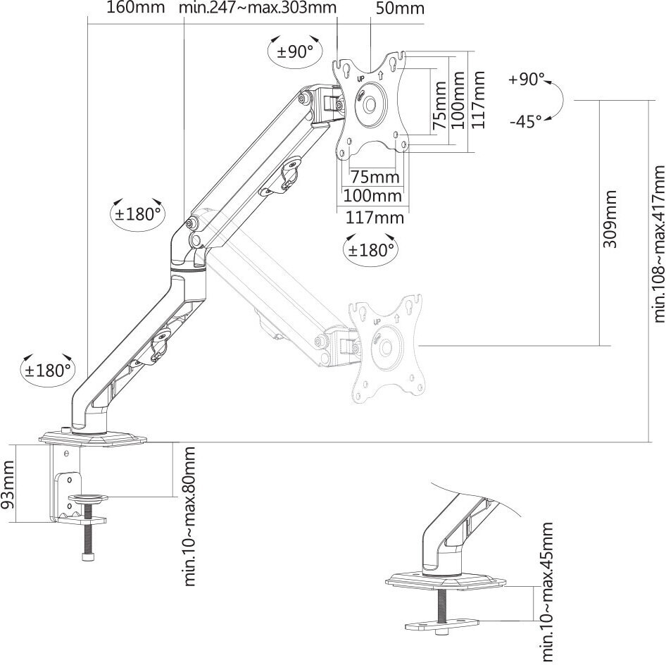 Neomounts FPMA-D650 -monitorivarsi on monipuolisilla säädöillä varustettu teline jopa 27 tuuman litteälle näytölle, jonka enimmäispaino on 7 kg. Monipuolinen kallistus (130 °), kääntö (360 °) ja kääntö (180 °) mahdollistaa näyttösi mihin tahansa katselukulmaan, jotta voit hyödyntää täysin litteän näytön ominaisuuksia. Lisäksi kiinnikkeessä on jousiavustettu korkeuden säätö (11-42 cm) ja syvyyden säätö (0-51 cm), mikä luo ergonomisen työasennon. Telineessä on kätevä kaapelinhallinta, jonka avulla luot siistin asennuksen ja työpisteen.