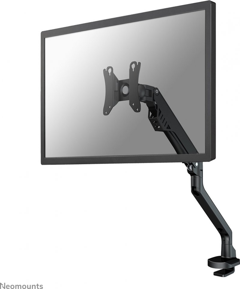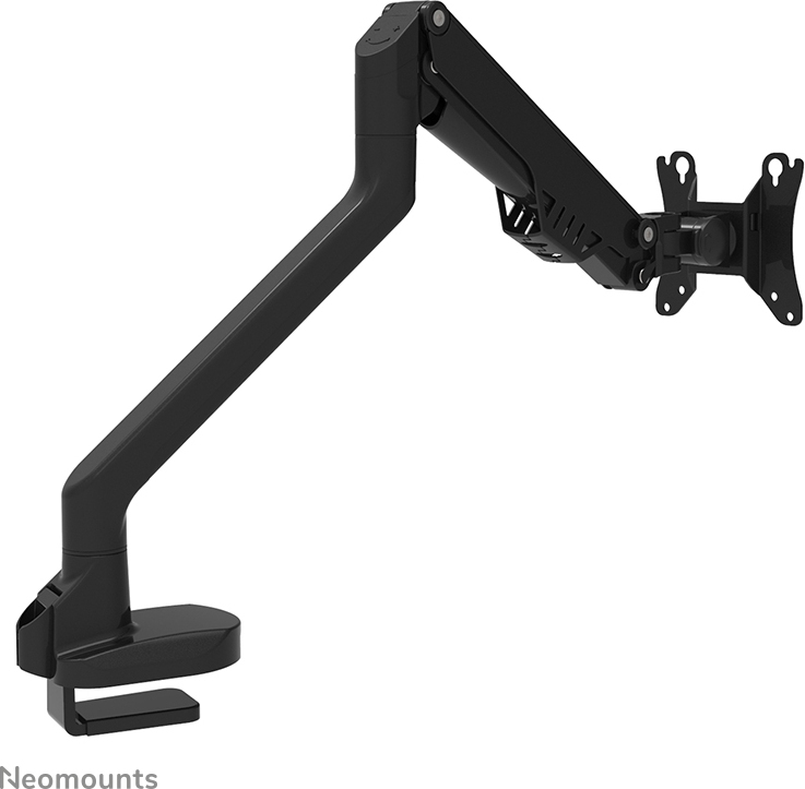 Neomounts FPMA-D750BLACK2 on monipuolisilla säädöillä ja korkeussäädettävällä kaasujousella varustettu pöytäteline yhdelle 10"-32" näytölle. Näyttöä on helppo nostaa, laskea, kallistaa ja kääntää, joten ergonomisen työskentelyasennon löytäminen on vaivatonta. Teline on kiinnitettävissä joko reunapuristimella tai läpivientikiinnikkeellä. Pöytätelineen avulla säästät tilaa työpöydältä ja kätevät kaapelikiinnikkeet takaavat siistin asennuksen.
