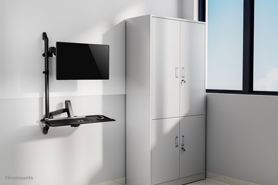 Neomounts WL90-325BL1 mullistaa työskentelyn tarjoamalla täydellisen seinään kiinnitettävän työaseman, joka yhdistää näytön ja näppäimistön ergonomiseen kokonaisuuteen. Tämä innovatiivinen ratkaisu tukee jopa 32 tuuman näyttöjä ja luo tilaa säästävän työpisteen, joka sopii erinomaisesti moderneihin toimistoihin ja kotitoimistoihin.