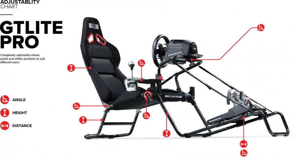 GT Lite Pro soveltuu kaikille rattipolkimille ja sisältää esiporatut reiät mm. Logitech sekä Thrustmaster rateille. Vaihdekepin alustan voi asentaa sekä vasemmalle että oikealle puolelle. Ainutlaatuinen muotoilu mahdollistaa penkin taittamisen myös ratin ja polkimien ollessa asennettuna. Tämän ansiosta GT Lite Pro on myös kannettava ja käyttäjä voi viedä kilpa-asetukset huoneesta toiseen tarvittaessa. Kaksi pyörää helpottaa istuimen siirtämistä.