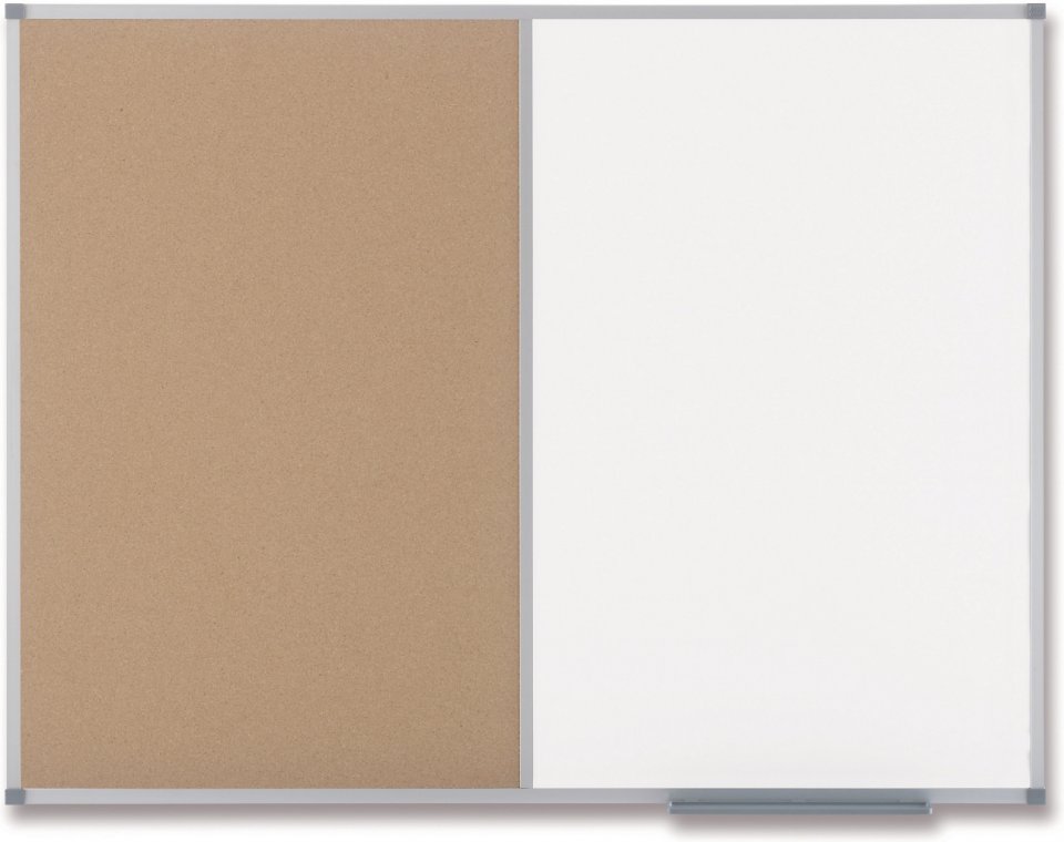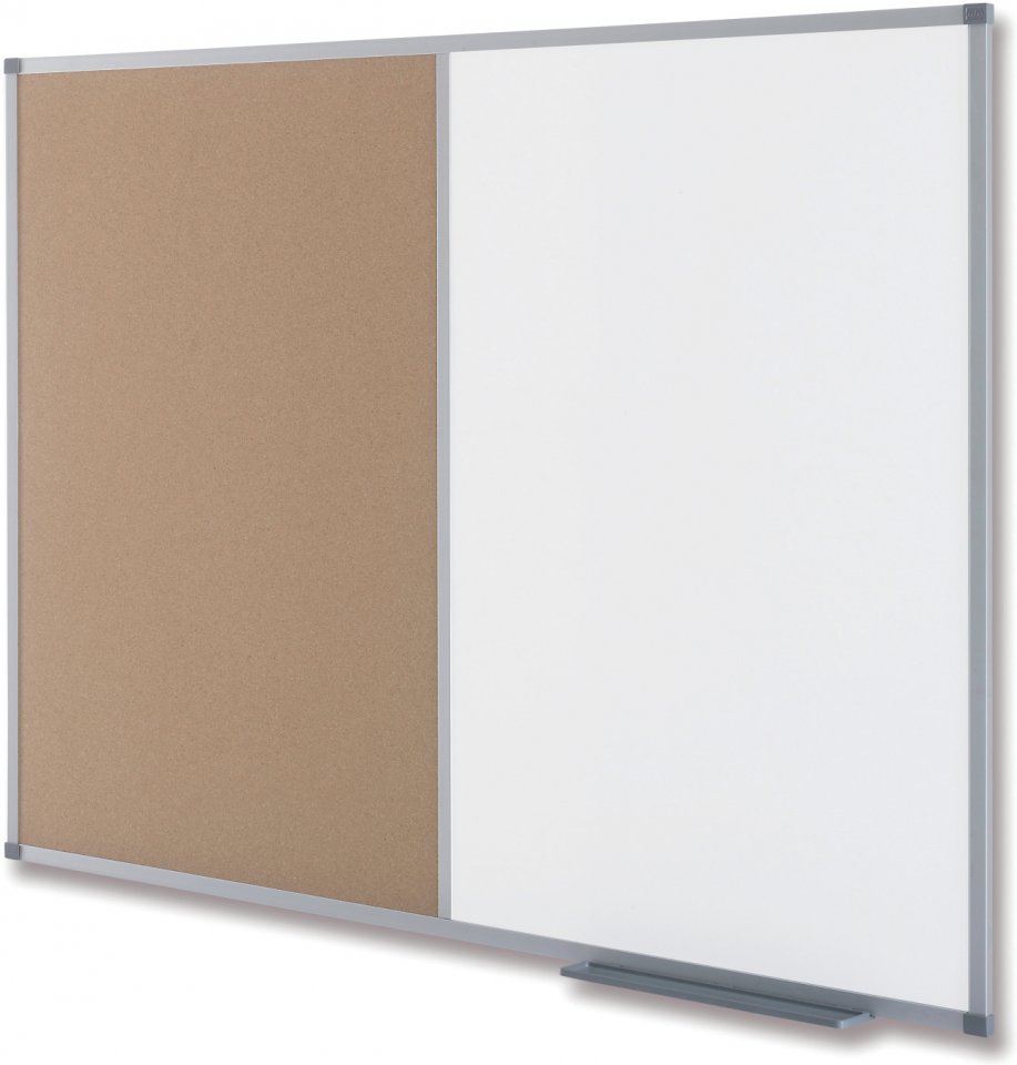 Korkki-/valkotaulu korkealuokkaisilla alumiinikehyksillä ja itsekorjautuvalla korkkipinnalla ilmoituksien kiinnitykselle ja näyttämiselle. Sisältää kulmakiinnikkeet. Koko: 120 x 90 cm.