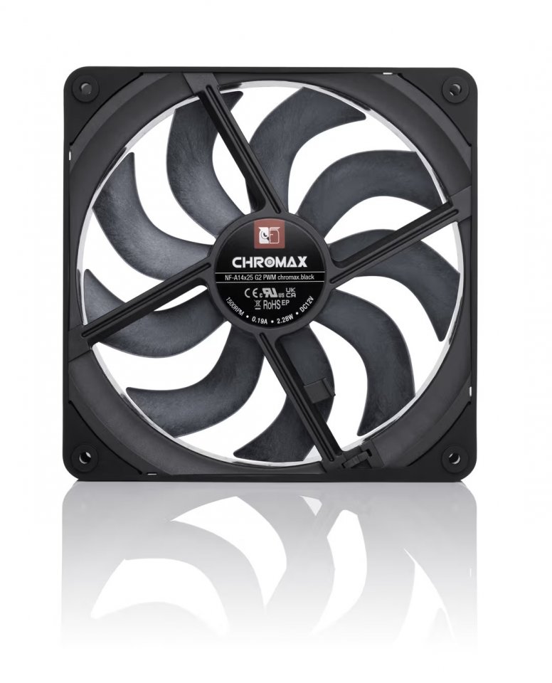 Noctua NF-A14x25 G2 PWM chromax.black on 140 x 25 mm kokoinen, neliön muotoinen tuuletin, joka tarjoaa hiljaisen ja tehokkaan jäähdytyksen erilaisiin käyttötarkoituksiin. Se on suunniteltu erityisesti vaativiin tilanteisiin, joissa tarvitaan sekä hyvää ilmavirtaa että korkeaa staattista painetta, kuten tietokoneen koteloissa ja nestejäähdytyksen jäähdyttimissä. Tämä malli on jatkoa suositulle NF-A14 -tuulettimelle, ja se on saanut paljon kiitosta suorituskyvystään ja hiljaisuudestaan.