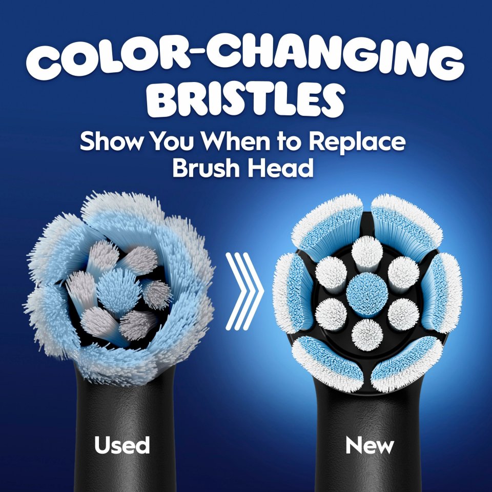• VÄRIÄ VAIHTAVA: Sinisestä valkoiseen väriä vaihtavat harjakset osoittavat, milloin harjaspää on vaihdettava