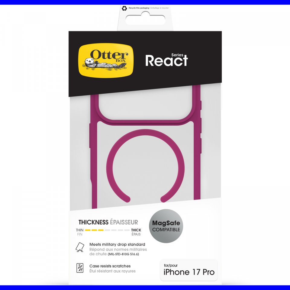 React-kuori sisältää vähintään 40 % kierrätysmateriaalia ja se toimitetaan kierrätettävässä pakkauksessa. Lisäksi se on suunniteltu toimimaan saumattomasti OtterBoxin lasisuojien kanssa, mikä mahdollistaa täydellisen suojauksen koko puhelimelle.