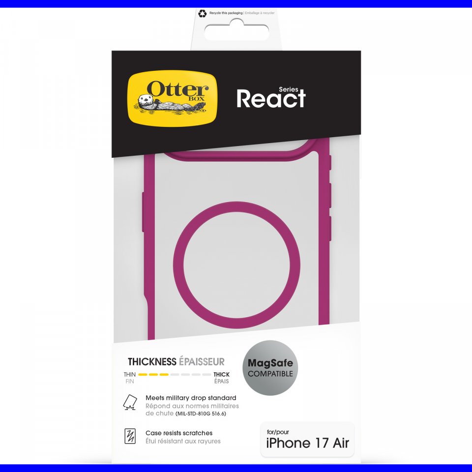 React-kuori sisältää vähintään 40 % kierrätysmateriaalia ja se toimitetaan kierrätettävässä pakkauksessa. Lisäksi se on suunniteltu toimimaan saumattomasti OtterBoxin lasisuojien kanssa, mikä mahdollistaa täydellisen suojauksen koko puhelimelle.