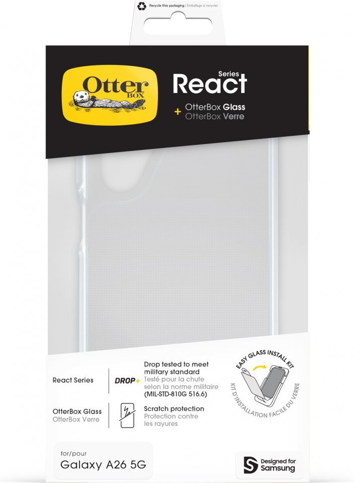 OtterBox React suojakotelo + OtterBox panssarilasi, Galaxy A26 5G, läpinäkyvä