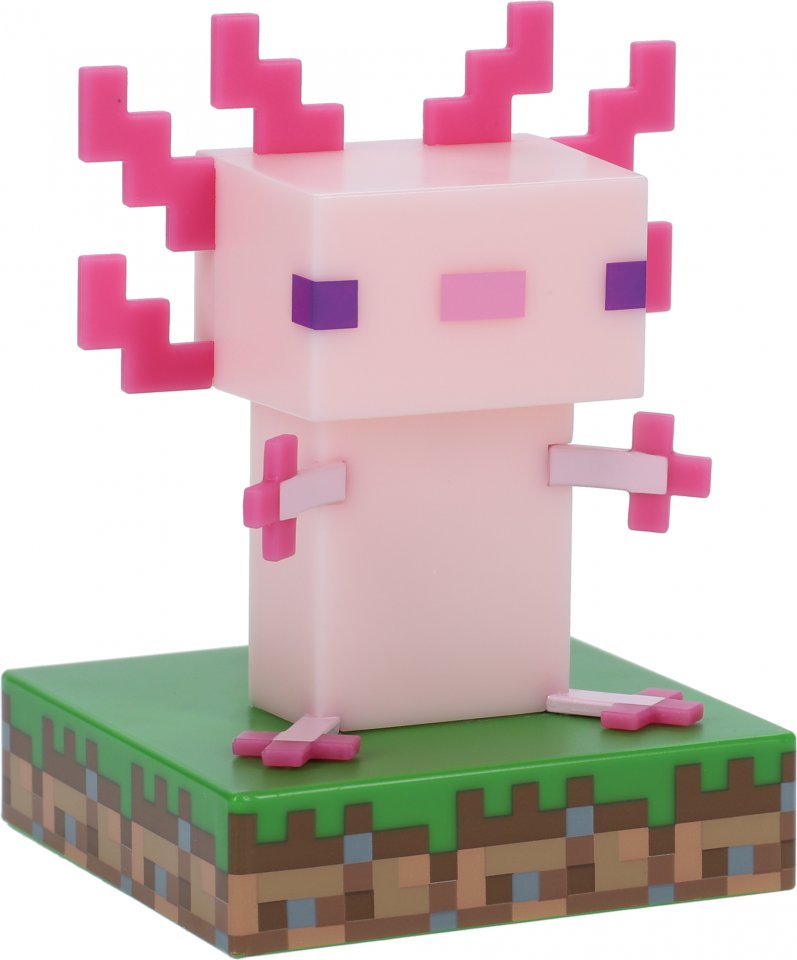Paladonen valmistamassa valossa keikistelee Minecraft-peleistä tuttu Axolotl. Valo toimii kahdella AAA-paristolla ja on 10 cm korkea.