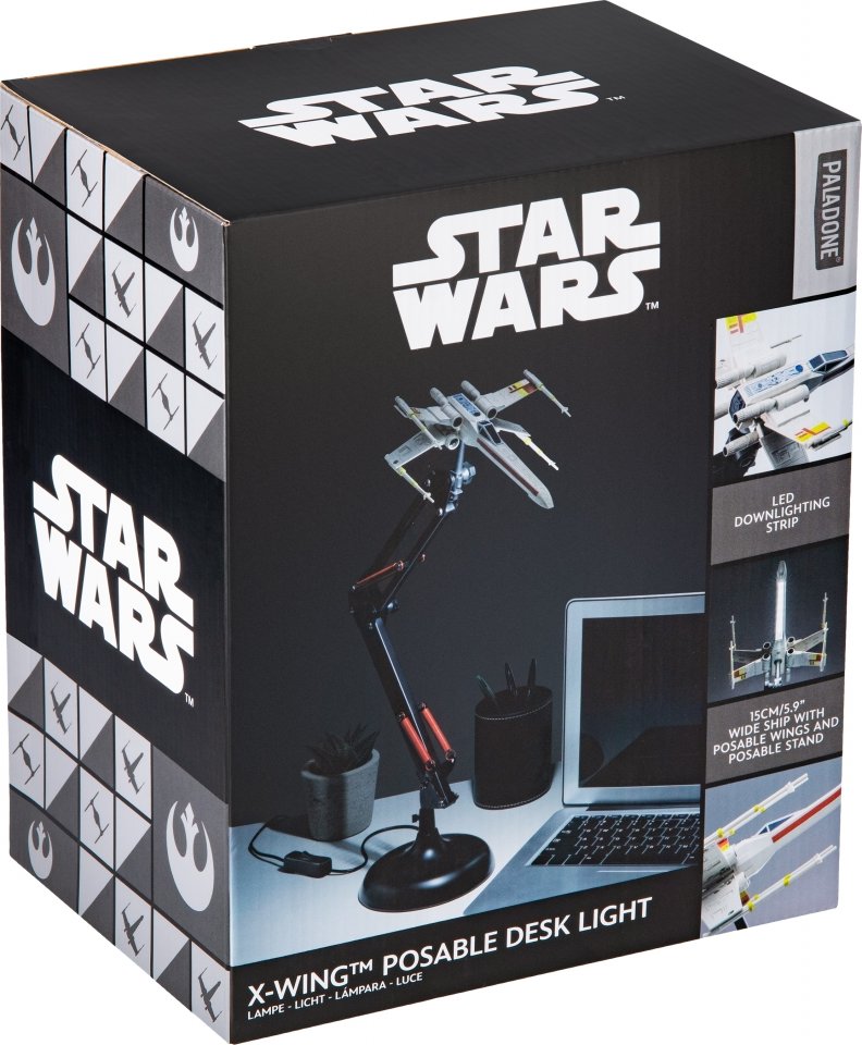 X-Wing Posable Desk Light on Star Wars -teemainen työpöytävalaisin, joka tuo taistelulentäjän tunnelman suoraan kotiisi. Valaisin on muotoiltu Star Wars -universumista tutun X-Wing-tähtihävittäjän mukaan. Se tuo esille franchiseen liittyvän ikonisuuden tyylikkäällä tavalla ja toimii katseenvangitsijana missä tahansa!