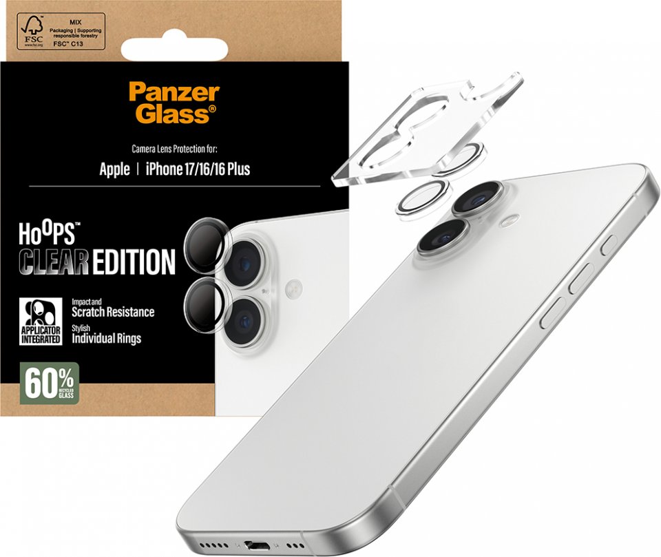 PanzerGlass Hoops kameran linssinsuoja, iPhone 17 / 16 / 16 Plus