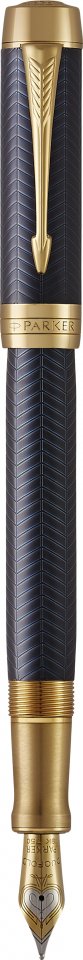 Parker Duofold Prestige Blue Chevron G.T. Fountain -mustekynä, sininen runko