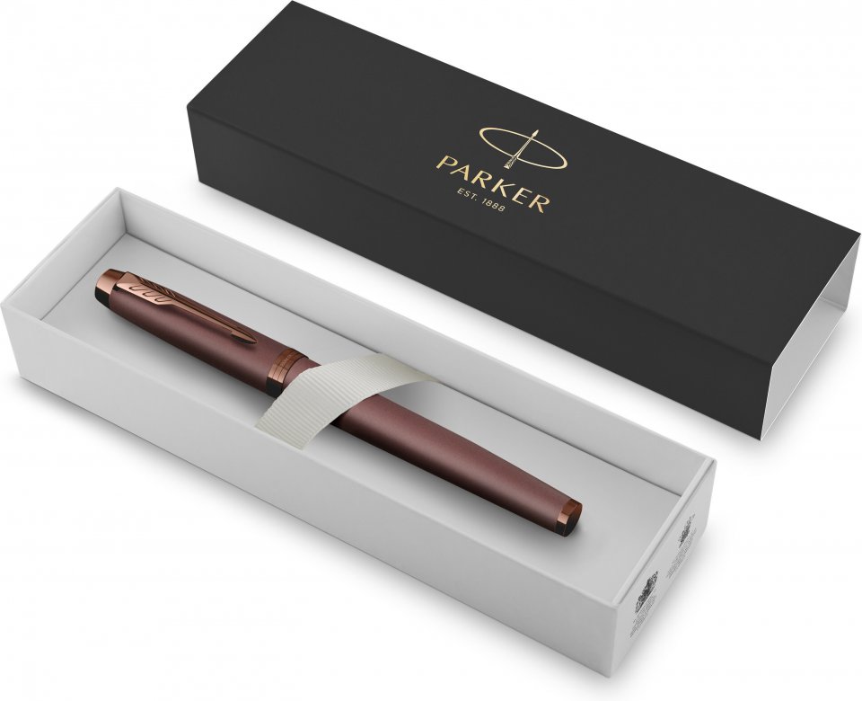 Tässä Parker-kynässä on hyödynnetty yli vuosisadan kestävää ammattitaitoa ja asiantuntemusta. Siinä on ainutlaatuiset metalliosat, jotka on koristeltu PVD-pinnoitteella. Moderni rollerball-kynä käyttää Parker QUINK-musteen täyttöpakkauksia, mikä takaa sujuvan ja täyteläisen kirjoituskokemuksen. Tyylikkäällä Parker-laatikolla varustettu ammattimainen Parker IM -kynä on ikimuistoinen lahja.