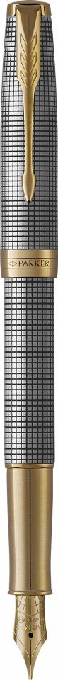 Parker Sonnet Chiselled Silver G.T Fountain -mustekynä, hopea runko