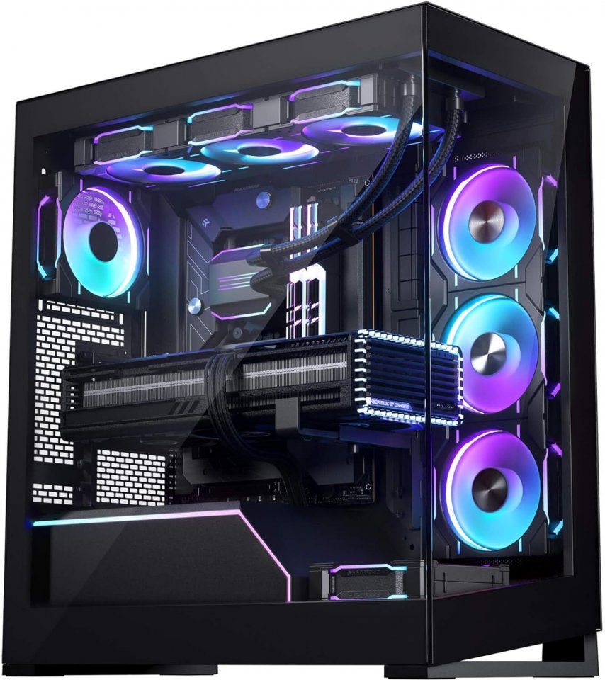 Lähes saumattomat lasipaneelit takaavat täydellisen näkymän kaikkiin komponentteihisi. Ylä- ja sivupaneelit on varustettu erittäin hienolla suorituskykyisellä verkolla, joka tarjoaa korkean ilmavirtauksen ja hyvän pölysuodatuksen. Kotelo tukee kahdeksaa 120 mm tuuletinta, mikä takaa huipputason jäähdytystehon. Lisäksi ylä- ja sivupaneeleihin mahtuu kaksi 360 mm jäähdytintä.