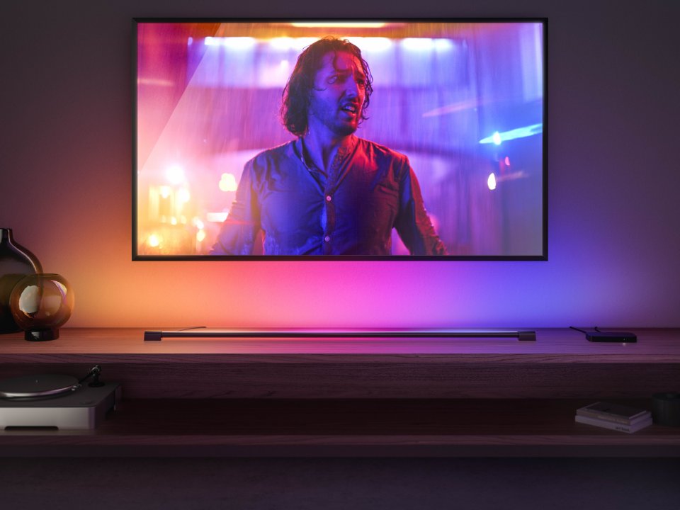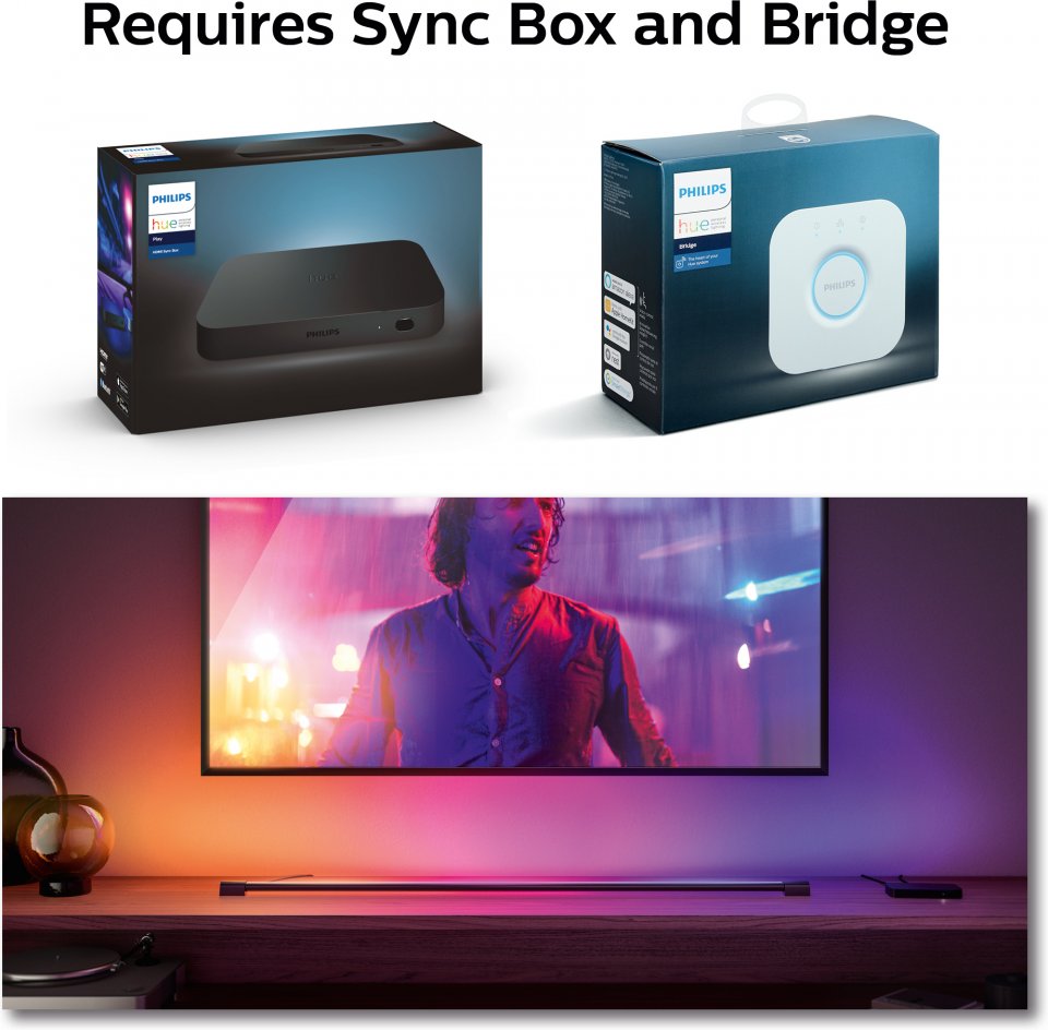 • Älykäs Philips Hue -valaistus synkronoi älyvalaistuksen värivalot elokuvien ja videopelien kanssa ja antaa ainutlaatuisen mahdollisuuden kokea jännittäviä viihde-elämyksiä kotona.