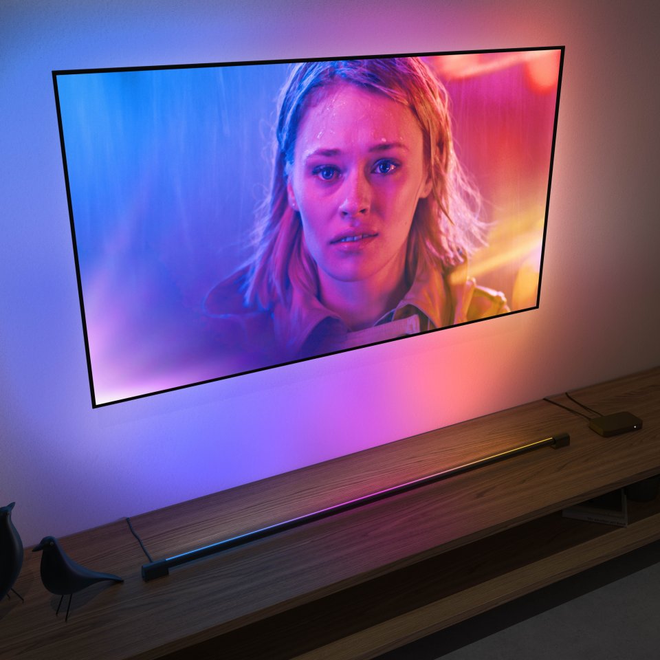 voit ohjata sen värikkään valoyhdistelmän haluamaasi kohtaan saadaksesi epäsuoran valaistuksen, joka ei heijastu televisiosta. Tukevista ja laadukkaista materiaaleista valmistettu Play Gradient light tube -loisteputki voidaan sijoittaa vaakatasoon television pohjaan tai jopa asentaa TV-tason alapuolelle tai yläpuolelle olevaan hyllyyn. Asennuspaikasta riippumatta se loistaa kirkasta, rohkean liukuvärjättyä valoa.