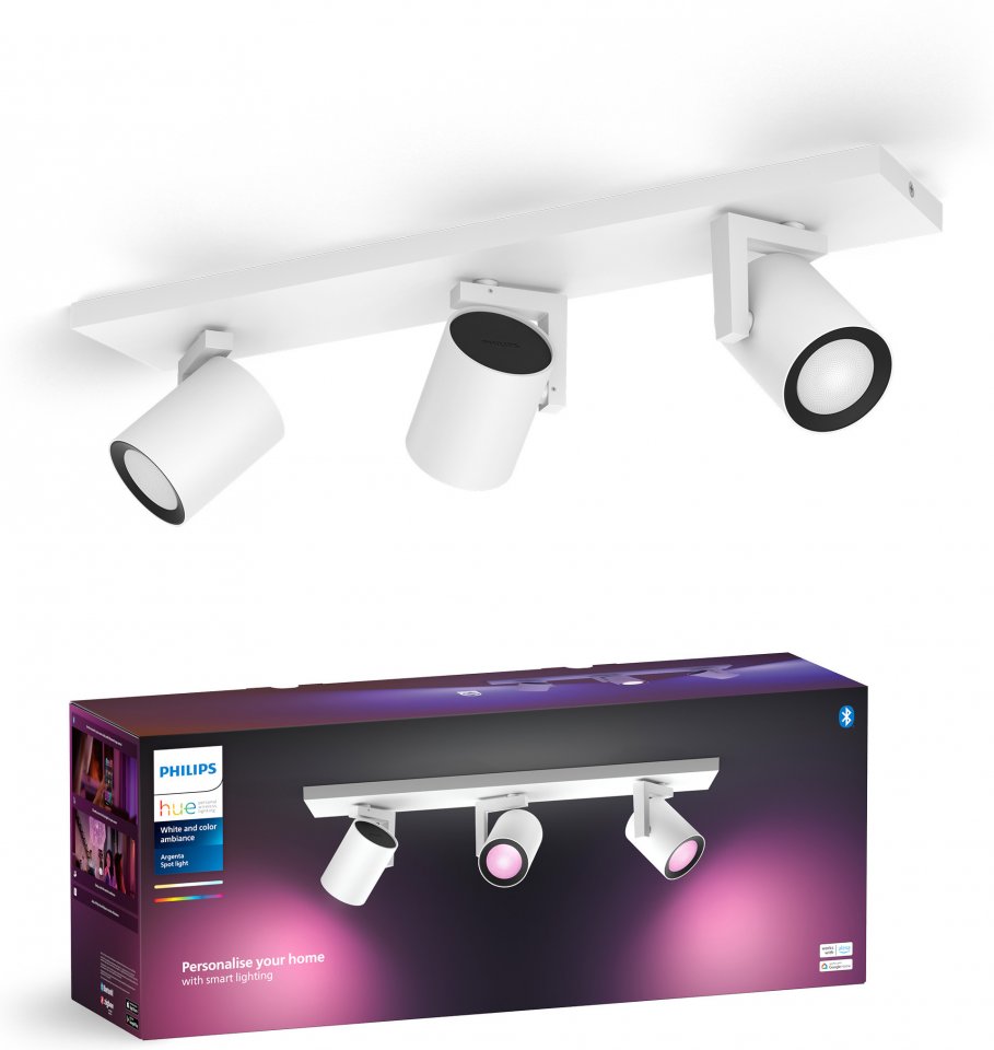 Luo tunnelmaa valaistuksella kotiisi Philips Hue Argenta -valaisimen ja pakkaukseen sisältyvien White and color ambiance GU10 -spottien avulla. Langatonta himmennystä tukeva kohdevalaisin toistaa valoa lukemattomissa väreissä ja valkoisen valon sävyissä. Kokeile pehmeää lämmintä valkoista valoa rentoutumiseen ja energistä kylmää valkoista aamulla virkistymiseen. Tai sukella yli 16 miljoonan värin sateenkaareen ja valitse mielesi mukaan - tunnelma on taattu! Hallitset valoja helposti älypuhelimella, Philips Hue -lisätarvikkeilla tai jopa puhekomennoin virtuaaliavustajan avulla. Tässä valkoisessa kohdevalaisimessa on kolme säädettävää spottia, jotka voit suunnata mihin tahansa haluamaasi kohtaan.
