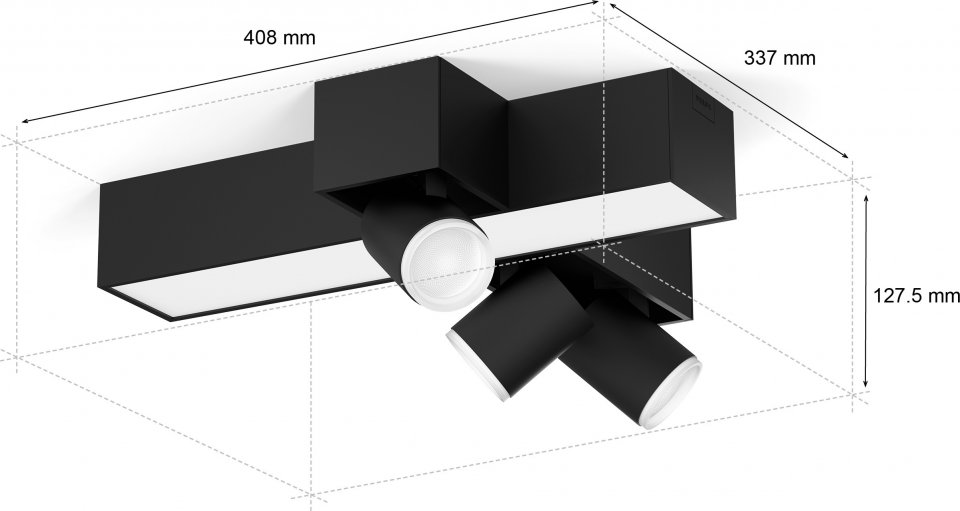 Philips Hue Centris on moderni ja tyylikäs älyvalaisin, joka tarjoaa loistavan yleis- ja tunnelmavalaistuksen ainutlaatuisen muotoilunsa ansiosta. Centris sopii erityisen hyvin suurempiin tiloihin, joilla on monta käyttötarkoitusta – avokeittiöihin tai eteiseen, jossa valoa voidaan spottipäillä suunnata säilytystiloihin, hyllylle ja sisustuselementteihin. Tässä mustassa valaisimessa on yksi valopaneeli sekä kolme säädettävää spottia ristin muodossa. Kukin neljästä valonlähteestä on White and color ambiance -sarjaa, eli ne voivat toistaa mitä tahansa värivaloa tai valkoisen valon sävyä lämpimästä viileään. Valonlähteitä voi ohjata erikseen tai yhdessä. Voit helposti mukauttaa valaistusta ja tehdä siitä oman näköisesi Hue-sovelluksessa. Sovelluksesta löytyy myös paljon valaistusasetuksia, dynaamisia tehosteita, älykkäitä automaatioita ja paljon muuta.