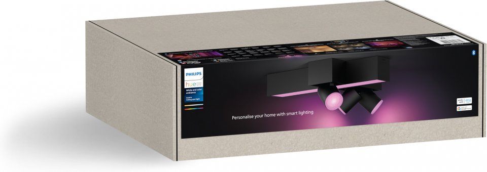 Philips Hue White and Color Ambiance Centris Cross älykattovalaisin kolmella spotilla, musta