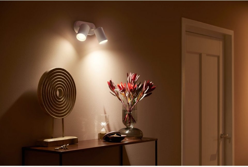 Philips Hue Fugato on tyylikäs ja monipuolinen älykohdevalaisin, joka luo loistavan valaistuksen ja ainutlaatuisen tunnelman kotiisi. Mukana tulee langatonta himmennystä tukevat White and Color ambiance GU10 -kohdelamput, jotka voivat toistaa valoa lukemattomissa väreissä ja valkoisen valon sävyissä. Kokeile pehmeää lämmintä valkoista valoa rentoutumiseen ja energistä kylmää valkoista aamulla virkistymiseen. Tai sukella yli 16 miljoonan värin sateenkaareen ja valitse mielesi mukaan - tunnelma on taattu! Hallitset valoja helposti älypuhelimella, Philips Hue -lisätarvikkeilla tai jopa puhekomennoin virtuaaliavustajan avulla. Tässä valkoisessa kohdevalaisimessa on kaksi säädettävää spottia, jotka voit suunnata mihin tahansa haluamaasi kohtaan.