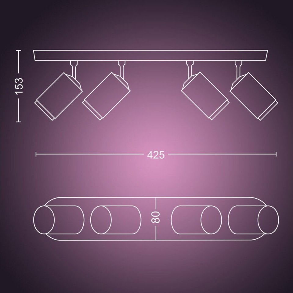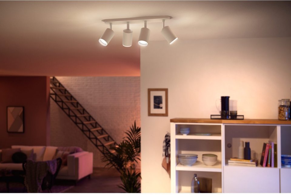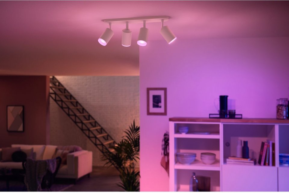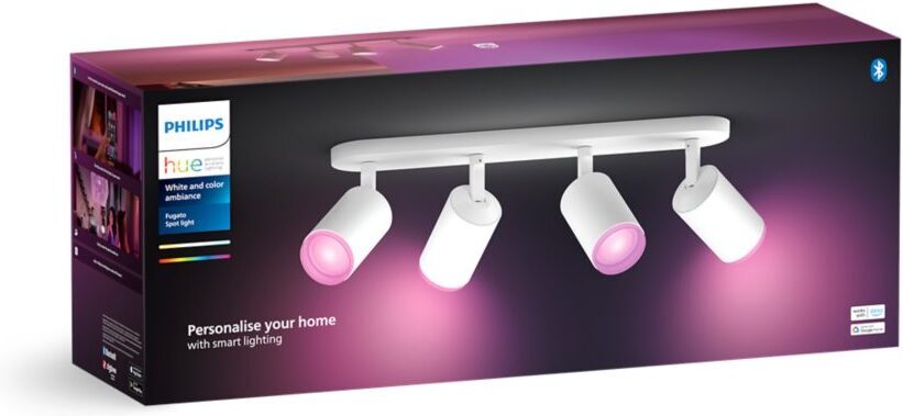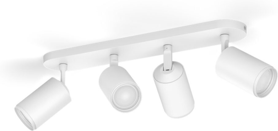 Philips Hue Fugato on tyylikäs ja monipuolinen älykohdevalaisin, joka luo loistavan valaistuksen ja ainutlaatuisen tunnelman kotiisi. Mukana tulee langatonta himmennystä tukevat White and Color ambiance GU10 -kohdelamput, jotka voivat toistaa valoa lukemattomissa väreissä ja valkoisen valon sävyissä. Kokeile pehmeää lämmintä valkoista valoa rentoutumiseen ja energistä kylmää valkoista aamulla virkistymiseen. Tai sukella yli 16 miljoonan värin sateenkaareen ja valitse mielesi mukaan - tunnelma on taattu! Hallitset valoja helposti älypuhelimella, Philips Hue -lisätarvikkeilla tai jopa puhekomennoin virtuaaliavustajan avulla. Tässä valkoisessa kohdevalaisimessa on neljä säädettävää spottia, jotka voit suunnata mihin tahansa haluamaasi kohtaan.