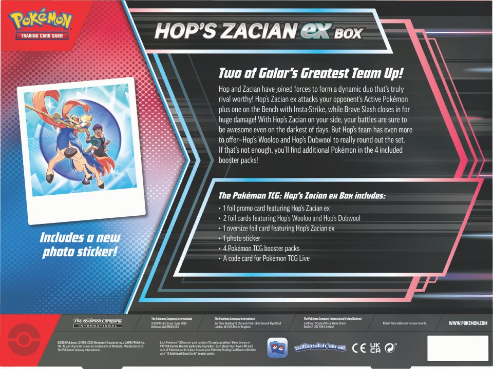 Pokémon TCG: Hop's Zacian ex Box sisältää: