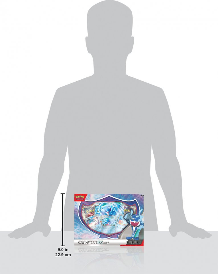 Kun taistelussa kaikki näyttää olevan menetettyä, kutsu sankari pelastamaan päivä! Zero to Hero -kyvyllään Palafin voi tehdä upean muodonmuutoksen voimakkaaksi Palafin EX:ksi, jolla on af-fin-ityy lyödä vastustajia valtameren aallon voimalla. Tästä laatikosta löydät Finizenin, Palafinin ja Palafin EX:n pelattavina foilikortteina sekä isokokoisen version Palafin EX:stä näytteillepanoa varten ja kourallisen booster-pakkauksia, joiden sisällä on lisää kortteja.