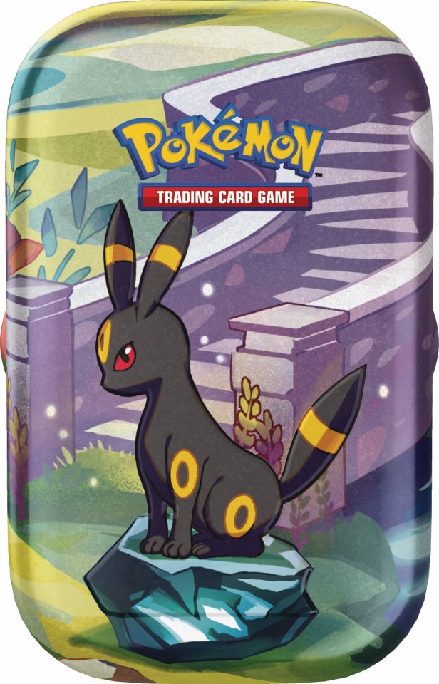 Pokémon-suosikit kämmenelläsi! Jokainen peltilaatikko sisältää kaksi Scarlet & Violet — Prismatic Evolutions -boosteria, yhden taidekortin, joka vastaa laatikon kuvaa ja esittää joko Vaporeonia, Jolteonia, Flareonia, Espeonia, Umbreonia, Leafeonia, Glaceonia tai Sylveonia, sekä yhden kolikon, jossa on Eevee.