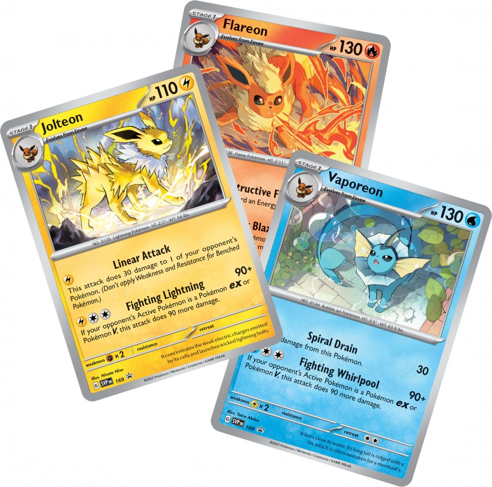 • 3 folipromokorttia, joissa on Flareon, Vaporeon ja Jolteon