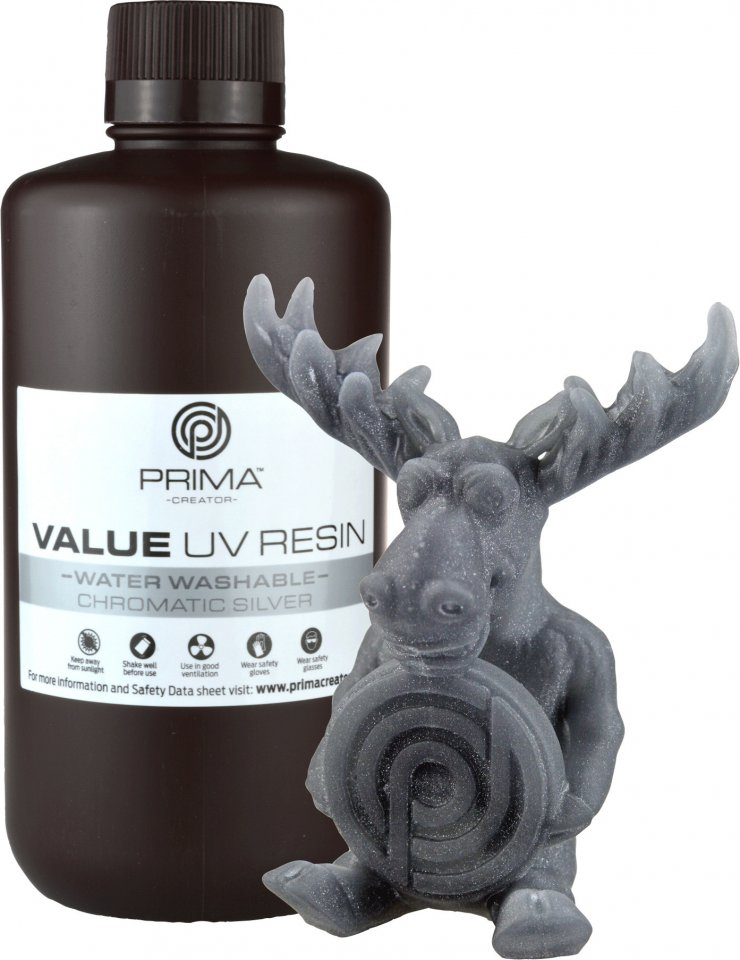 PrimaCreator Value Water Washable UV Resin -hartsi 3D -tulostimeen, 1000 ml, krominen hopea