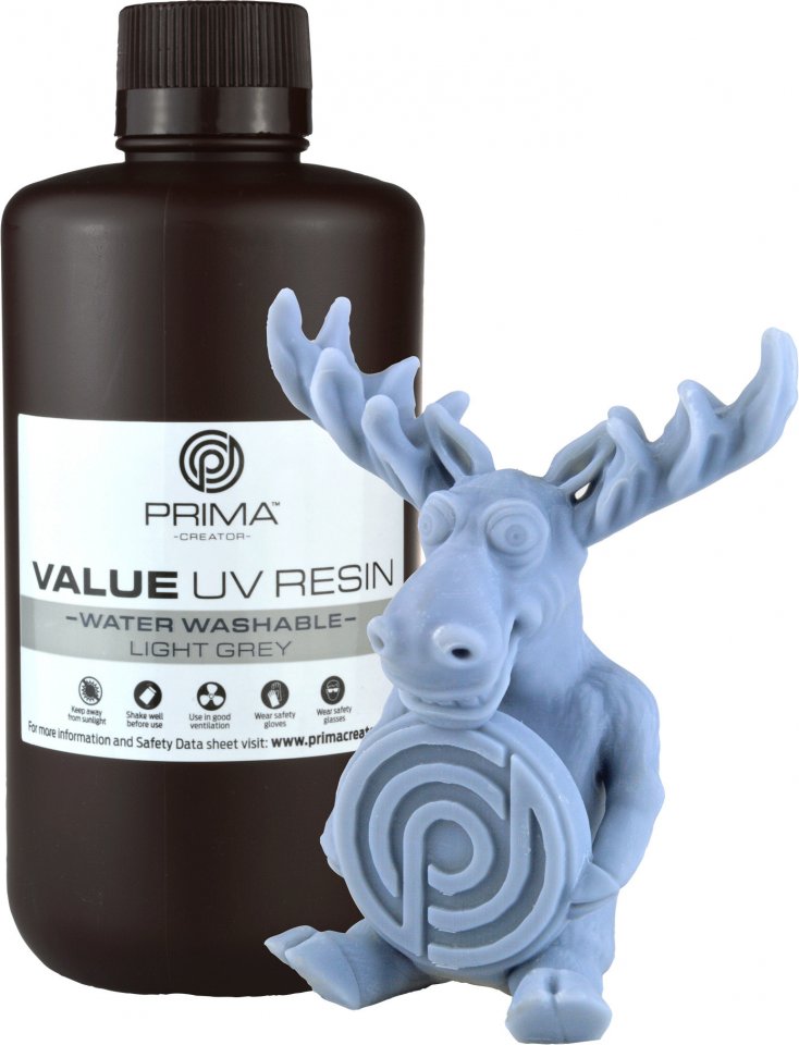 PrimaCreator Value Water Washable UV Resin -hartsi 3D -tulostimeen, 1000 ml, vaaleanharmaa
