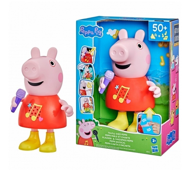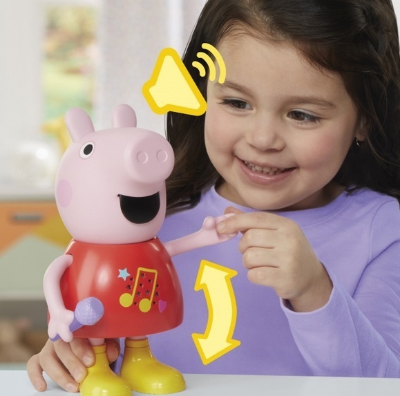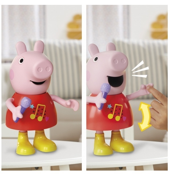 Kun Pipsan kättä liikuttaa, niin sen suu liikkuu ja Pipsa puhuu tai laulaa! Pikkupossut voivat myös laittaa Pipsan hyppimään leikisti mutalammikoissa, jolloin kuuluu roiskuvia äänitehosteita! Puhuvan ja laulavan Pipsa Possun kaltaiset lelut voivat auttaa harjoittelemaan kirjaimia ja värejä, kun leikitään I Spy -leikkiä ensimmäisen parhaan ystävän Pipsa Possun kanssa.