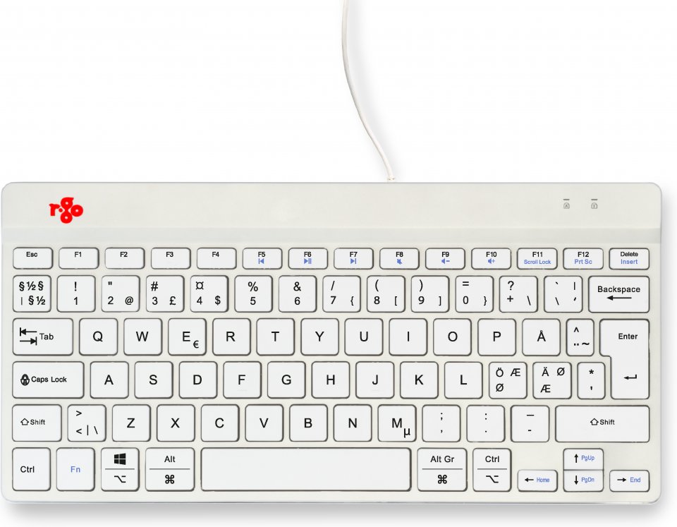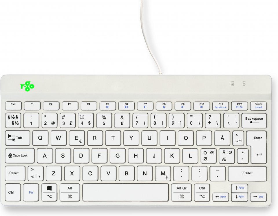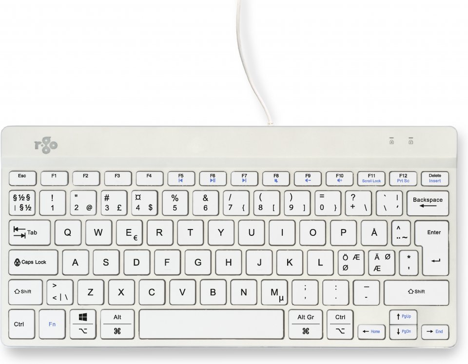R-Go Compact Break -ergonominen näppäimistö, langallinen, valkoinen