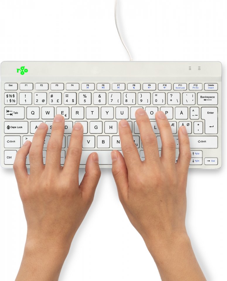 R-Go Compact Break -näppäimistö ilmoittaa LED-värisignaaleilla, kun on aika pitää tauko. Kirjoittamisen aikana valo vaihtaa väriä liikennevalon tapaan: jos valo on vihreä, se tarkoittaa, että työskentelyaikasi on terveellinen, oranssi osoittaa, että on aika pitää tauko ja punainen, että olet työskennellyt liian kauan. Lyhyiden taukojen pitäminen työpäivän aikana lisää keskittymiskykyäsi, ehkäisee ylityövalituksia ja pitää sinut kunnossa työpäivän aikana.