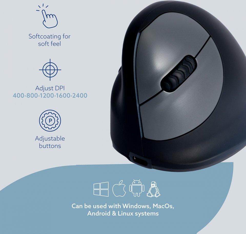 Hiiri toimii yhdessä R-Go Break -ohjelmiston kanssa, joka voitti Benelux Office Products Award 2021 -palkinnon. Taukojen pitäminen säännöllisesti auttaa ehkäisemään fyysisiä vaivoja, edistää verenkiertoa ja pitää sinut vireänä koko työpäivän ajan.