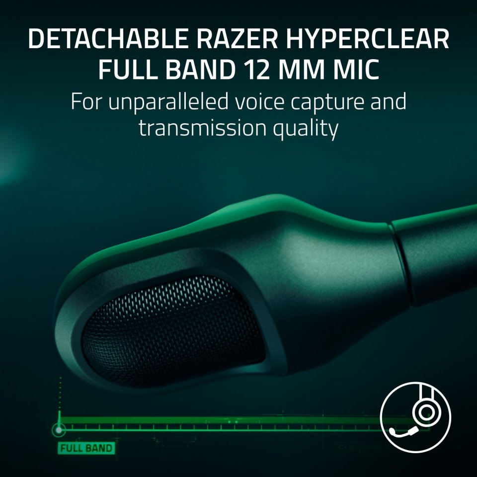 • Mikrofoni: Irrotettava HyperClear Full-Band 12 mm, yksisuuntainen
