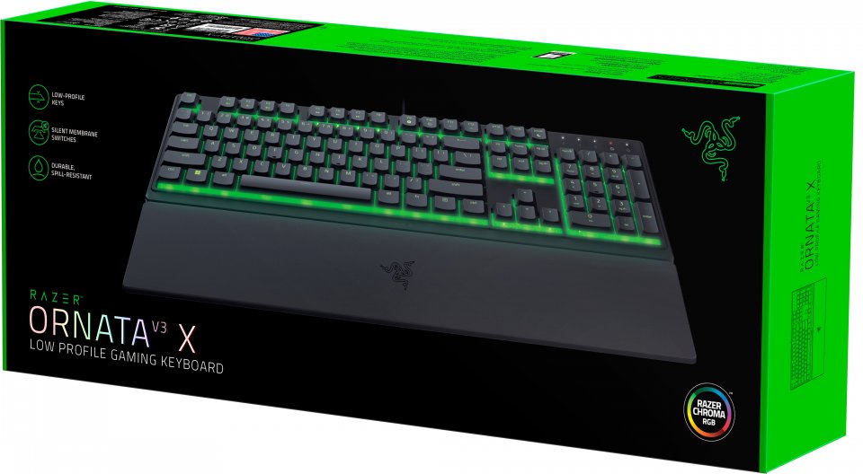 Razer Ornata V3 X on mataliilla ja hiljaisilla kytkimillä varustettu näppäimistö. Näin ollen se sopii niin työ kuin pelikäyttöönkin. Ergonimisuutta lisää rannetuki. Näppäinhatut ovat uv-pinnoitettuja, joten ne kestävät pitkään ilman kulumista. Näppäimistö on lisäksi roiskesuojattu. Näppäimistön taustaväriä voi vaihtaa Razer Chroma RGB avulla. (Huom. Vain yksivärinen taustavalaistus)