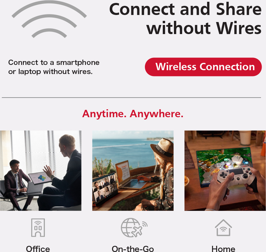 • 150BW:n voi helposti yhdistää langattomasti tietokoneeseen tai älypuhelimeen (Miracast), ja sitä voi käyttää vapaasti ilman kaapelia.
