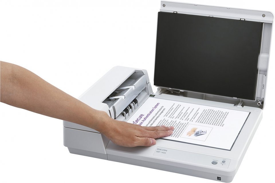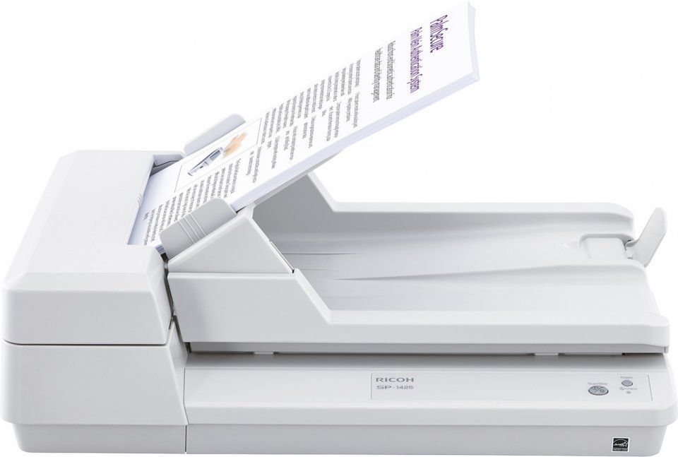 Ricoh SP 1425 skannerissa on sekä tasoskanneri että automaattinen dokumentinsyöttö, joten se sopii monenlaisten dokumenttien, kuten asiakirjojen, kuittien, käyntikorttien ja valokuvien, skannaukseen.