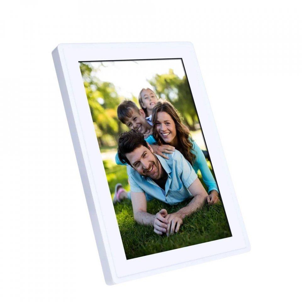 10,1 tuuman IPS-kosketusnäyttö tarjoaa kirkkaat värit ja laajat katselukulmat. Kehys voidaan sijoittaa vaaka- tai pystyasentoon, pöydälle tai seinälle ja se tukee automaattista kuvan kiertoa.