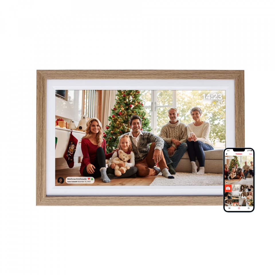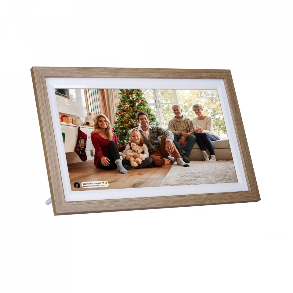 Rollei Smart Frame WiFi152 on digitaalinen valokuvakehys, joka tuo valokuvat ja videot helposti esille tyylikkäässä puukehyksessä. Sen 15,6-tuumainen IPS Full HD -kosketusnäyttö tarjoaa kirkkaan ja laajan katselukulman, ja sisäinen 32 Gt muisti mahdollistaa tuhansien kuvien ja videoiden tallentamisen ilman lisälaitteita. Käyttäjä voi siirtää kuvia langattomasti Frameo-sovelluksen avulla tai käyttää USB- ja SD-muistikortteja, mikä tekee kuvien hallinnasta joustavaa. Kehystä voi käyttää sekä pystysuunnassa että vaakasuunnassa, ja se voidaan sijoittaa pöydälle jalustan avulla tai ripustaa seinälle.