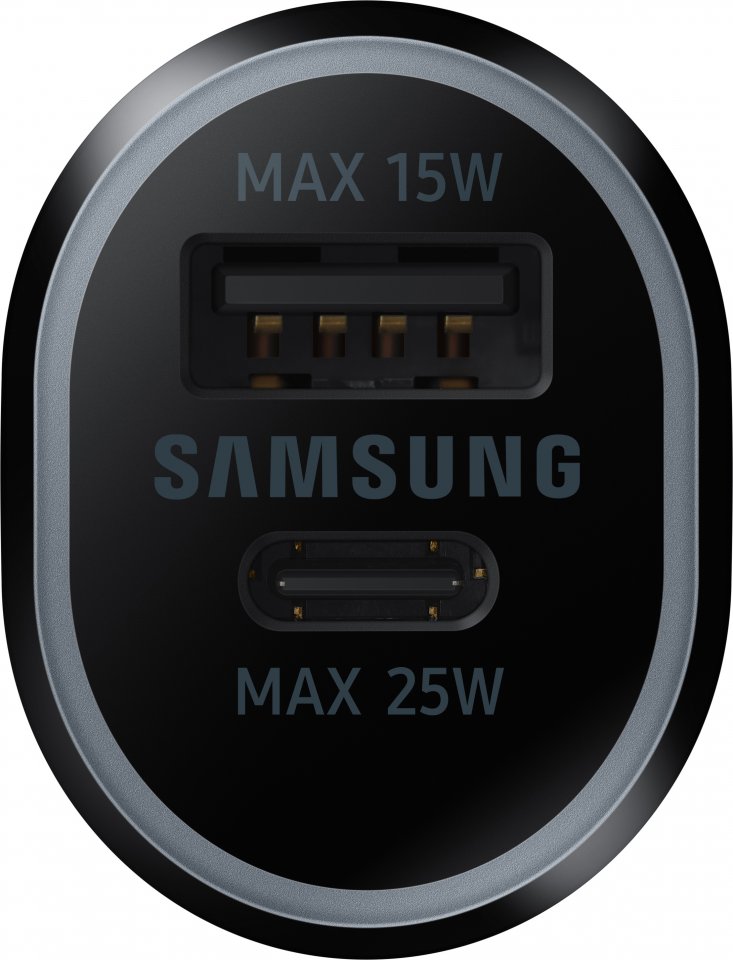 Samsung Car Charger Duo 40 W on tehokas autolaturi. Se on varustettu USB-C latausportilla (maks. 25 W super pikalataus) ja USB-A latausportilla (maks. 15 W pikalataus). Laturi pystyy siis antamaan yhteensä 40 W lataustehon samanaikaisesti laitteillesi. Kompaktin koonsa ansiosta se kulkee helposti mukana.